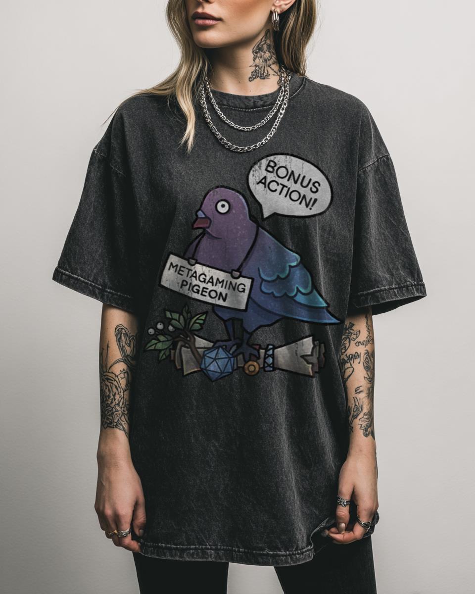 Do you sometimes bring outside knowledge into your tabletop adventures? Embrace the humorous side of role-playing with this ‘Metagaming Pigeon’ design! This funny tee is perfect for Dungeons & Dragons players, Dungeon Masters, and RPG enthusiasts who appreciate a good laugh about game mechanics and player antics. A must-have for your next campaign night or…