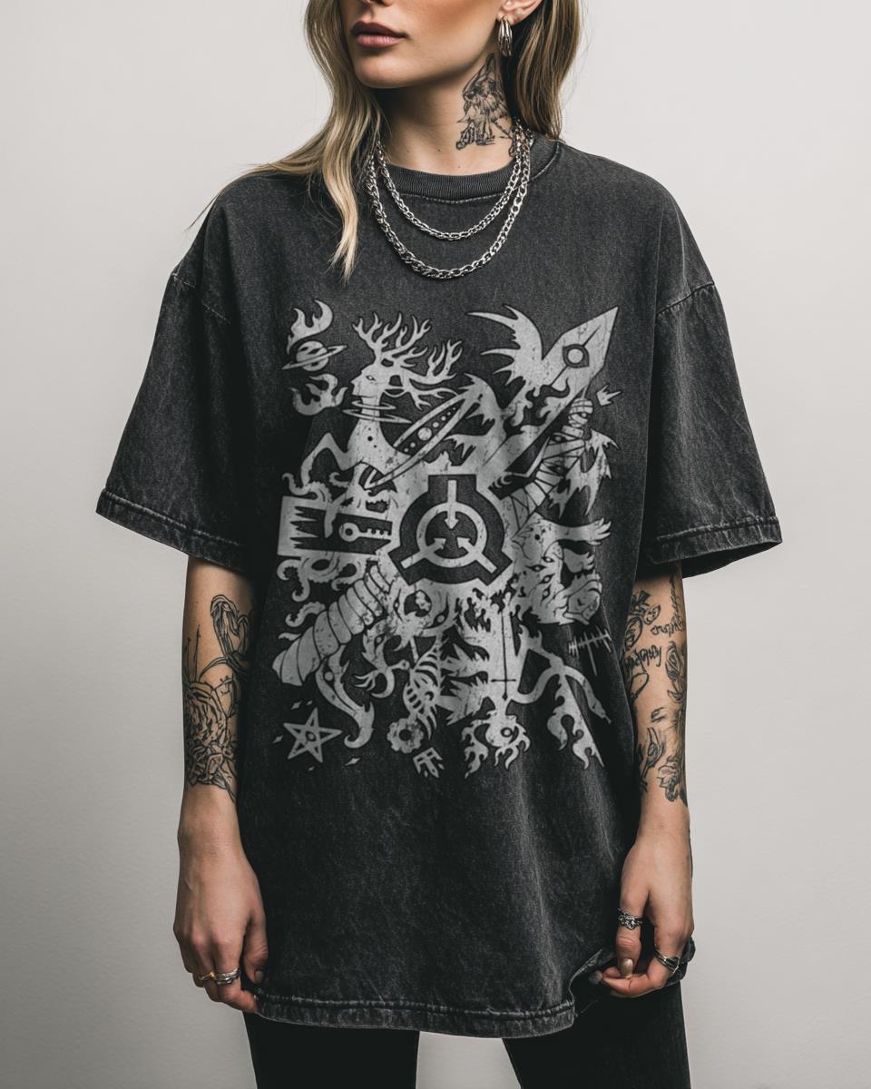 What Makes This SCP Foundation T-Shirt a Must-Have for Fans? Declare your allegiance to the enigmatic world of the SCP Foundation with this bold ‘We Die in the Dark so That You May Live in the Light’ motto T-shirt. Featuring a striking graphic on a unique black acidwash, this fan-created design merges horror and sci-fi…