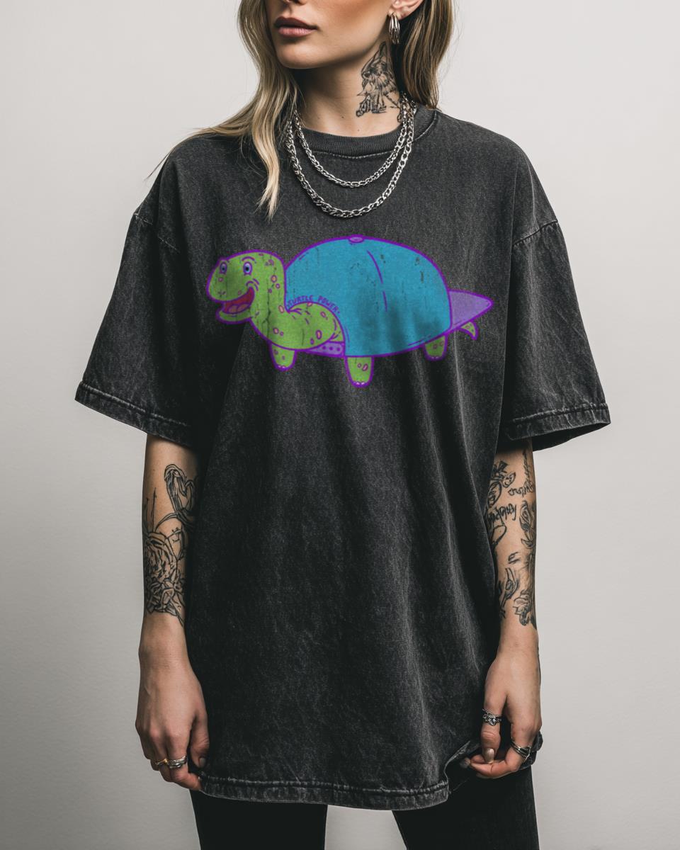 Why This Cute “Turtle Power” TMNT T-Shirt Is So Fun? Get ready for some serious “Turtle Power” with this adorable Cute Ninja Turtles T-Shirt! Featuring a colorful and happy graphic of a smiling turtle with a shell and a cool backwards hat, this acidwash black tee is perfect for any Teenage Mutant Ninja Turtles fan….