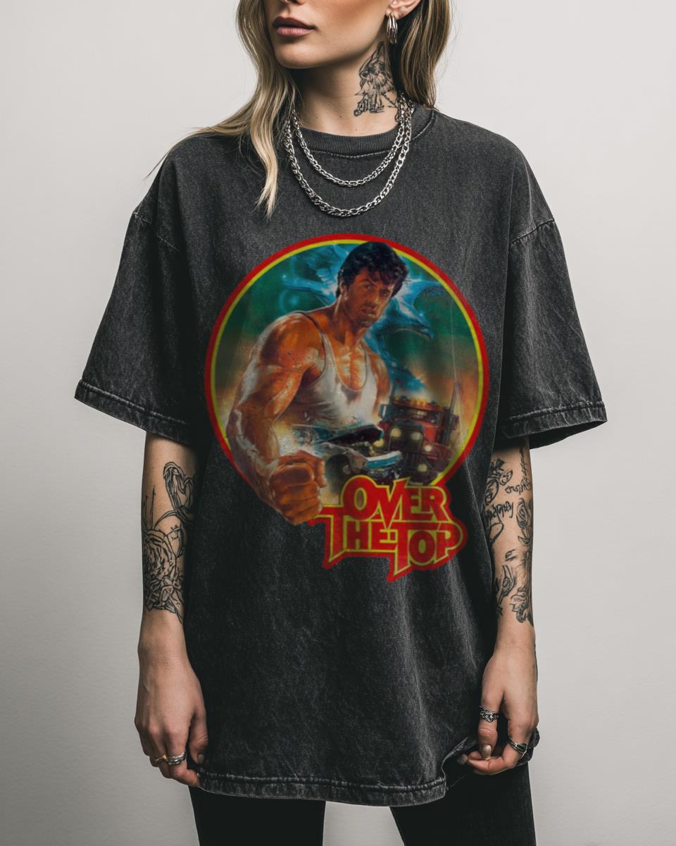 Relive 80s Action with a Lincoln Hawk Over The Top T-Shirt! Channel the strength of Lincoln Hawk with this Over The Top 80s movie T-shirt. Featuring a retro graphic inspired by the classic film on a unique black acidwash 100% cotton fabric, it’s perfect for fans of vintage action and arm wrestling legends. Why This…