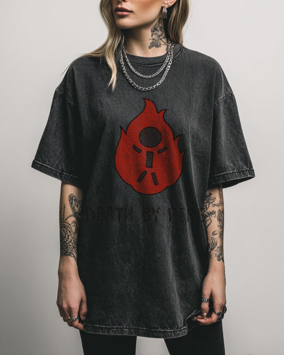 What Makes This Fire Force ‘Death by Fire’ T-Shirt Stand Out? Channel the power of the pyrokinetics with this striking Fire Force ‘Death by Fire’ T-Shirt, a minimalist yet impactful design inspired by the popular anime, Enen no Shouboutai. Featuring a fan-created graphic that embodies the series’ fiery essence, this black acidwash tee is perfect…