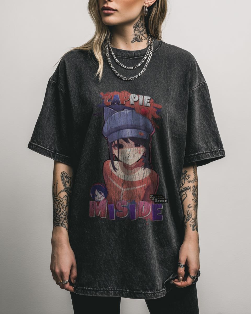 Why is This Miside Mita Cappie T-Shirt a Must-Have for Gaming Fans? Show your love for your favorite waifu with our Miside Mita Cappie T-Shirt, a charming fan-created design inspired by the “Cool Mita” character from the popular game Miside. This graphic tee features a kawaii anime girl print on a stylish black acidwash background,…