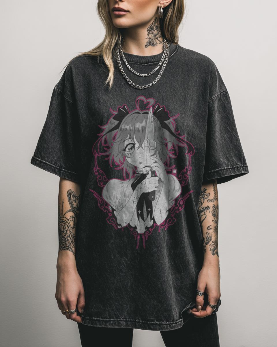 Why This Possessive Kawaii 80s Anime Girl Tee is Unique? Embrace the intriguing blend of cute and creepy with this Possessive Kawaii 80s Anime Girl T-Shirt. Featuring a distinctive retro graphic, this black acidwash anime tee captures a classic vintage aesthetic with a playful, yet unsettling charm. Stand Out with This Retro Anime Style: Intriguing…