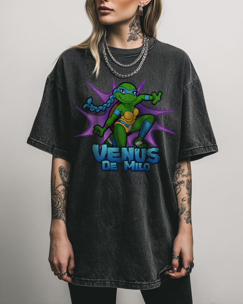 Are you a nostalgic fan of the Teenage Mutant Ninja Turtles, especially the fifth turtle, Venus De Milo? Celebrate the unique addition to the TMNT family with this ‘Venus De Milo’ graphic! This design pays homage to the female ninja turtle, a memorable part of the franchise’s history, bringing a fresh perspective to the classic…