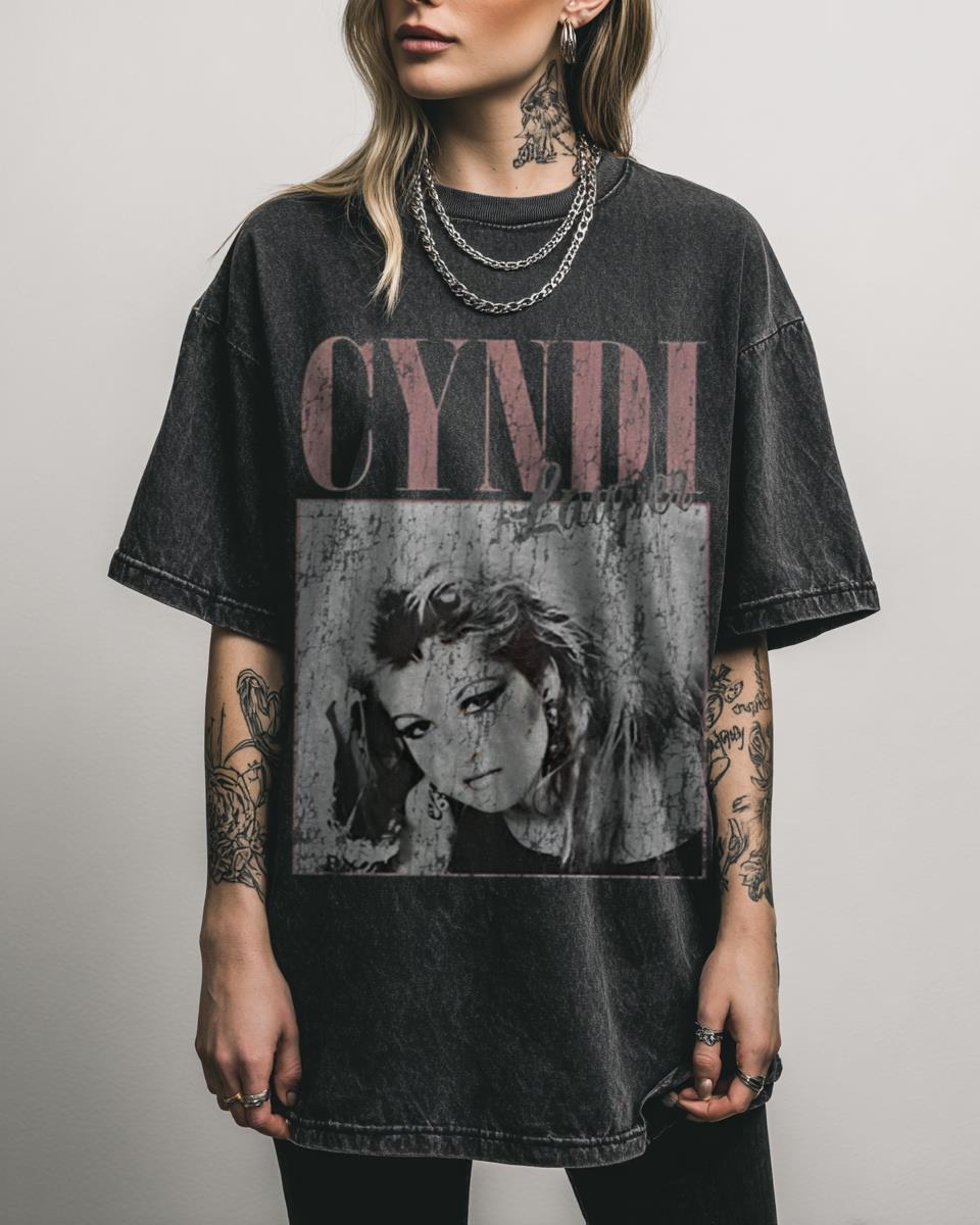 Why This Cyndi Lauper 80s Pop Music Black Acidwash T-Shirt is Iconic? Celebrate an undeniable 80s icon with this vibrant “Cyndi Lauper” graphic tee! Featuring a fan-created tribute to the legendary pop star, this black acidwash T-shirt is a perfect blend of retro music style and modern comfort, ideal for anyone who believes that girls…