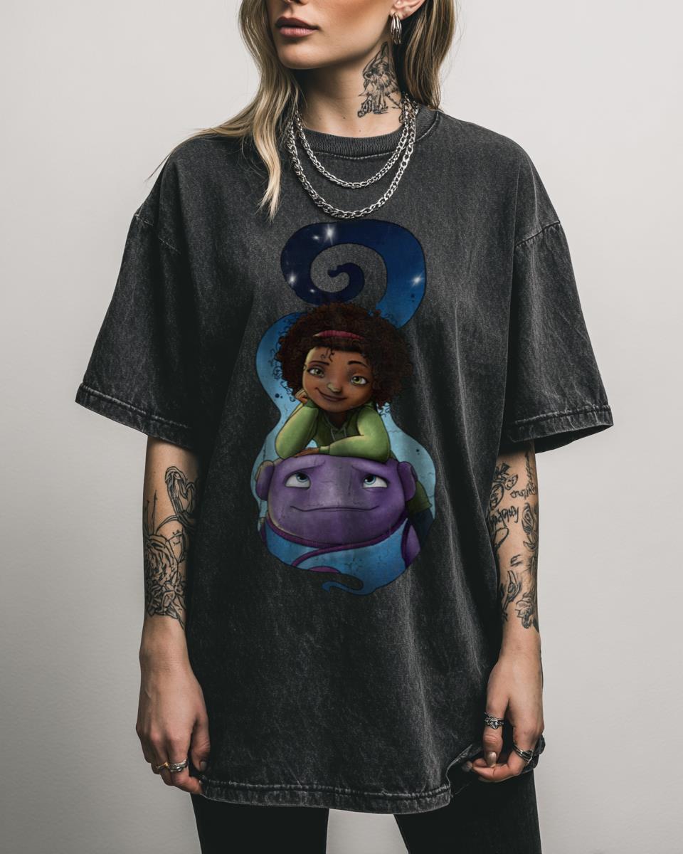 Looking for an adorable and fun tee featuring your favorite alien and human duo? Get ready for an out-of-this-world adventure with the ‘Tip and Oh’ T-shirt! This cute cartoon art, created by artist Cuteoons, is inspired by the beloved Dreamworks movie ‘Home’, featuring the unlikely friendship between Tip and the adorable Boov, Oh. Perfect for…