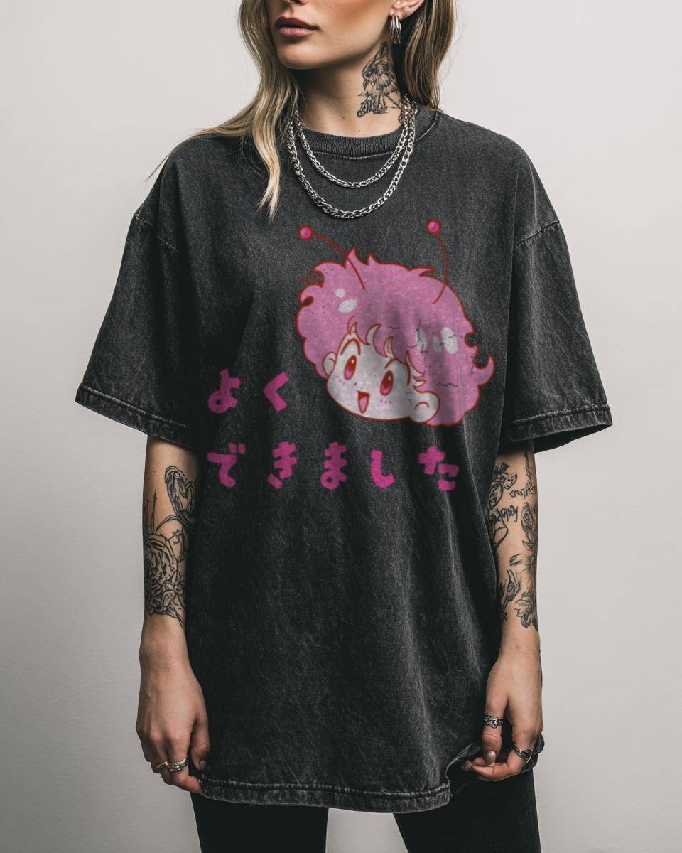 Looking for an adorable way to celebrate achievements with a retro anime touch? Say ‘Great Job!’ with this super cute t-shirt featuring a happy, chibi anime girl in a charming vintage 80s pink tone style. This kawaii design, complete with Japanese Kanji, is perfect for congratulations, expressing happiness, or simply adding a sweet, girly touch…