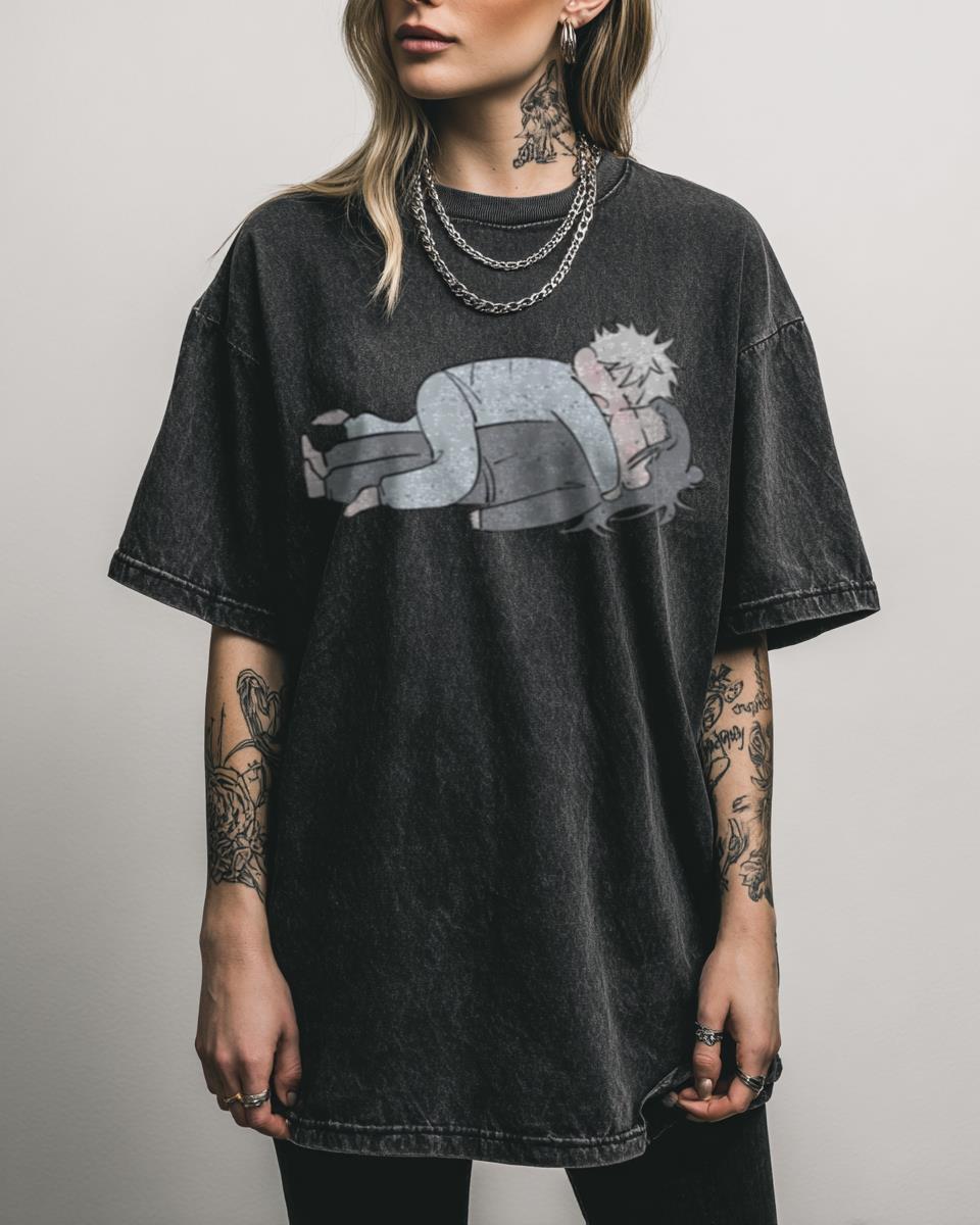 Do you cherish the tender and playful moments between Gojo and Geto from Jujutsu Kaisen? Capture the heartwarming dynamic with this ‘Gojo sleeps on Geto’ T-shirt, featuring an adorable chibi-style illustration of Satoru Gojo comfortably resting on Suguru Geto. This design highlights a beloved ‘Satosugu’ moment, perfect for fans who adore the bond between these…