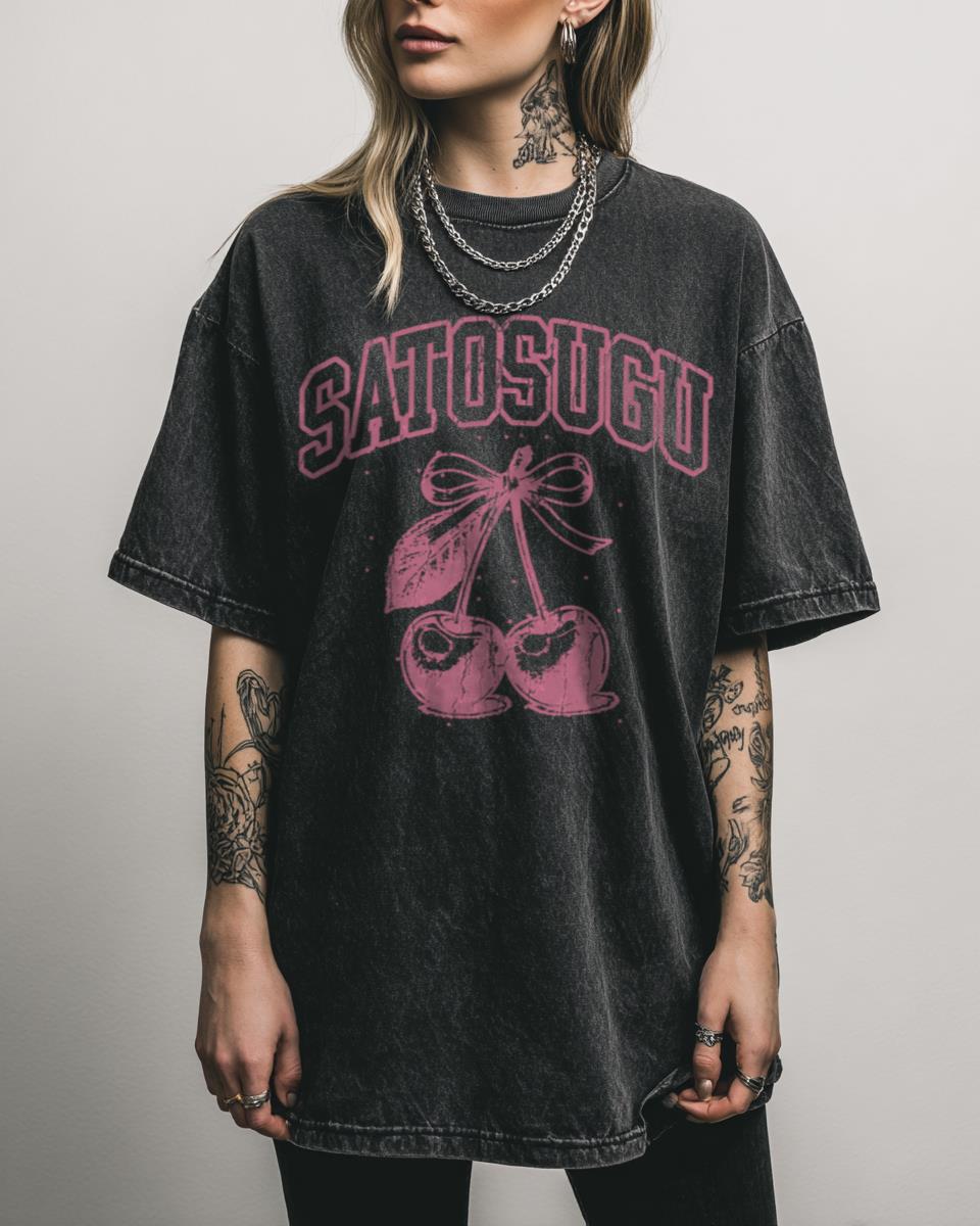 Looking for a sweet, aesthetic tee to celebrate your favorite JJK ship? Adorn your style with this lovely ‘Satosugu Cherry Design #2’ t-shirt, a charming pink version for Jujutsu Kaisen fans. Featuring a delicate cherry and bow aesthetic, this tee is perfect for fangirls who love boys love anime and the iconic bond between Gojo…