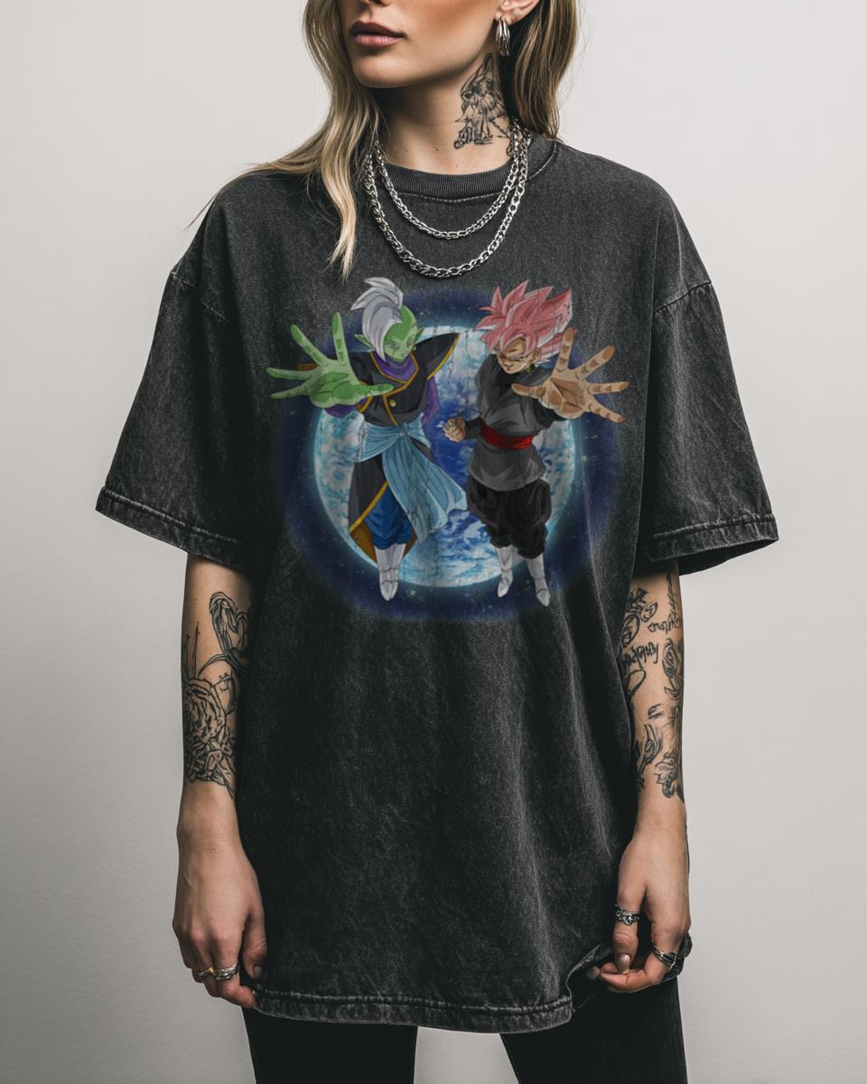 Do you admire the formidable power of Zamasu and Goku Black? This design features the terrifying duo, Zamasu and Goku Black (Super Saiyan Rose), from the intense Future Trunks Saga of Dragon Ball Super. A must-have for fans who appreciate powerful villains and epic battles in the Dragon Ball universe. Why You’ll Love This Zamasu…