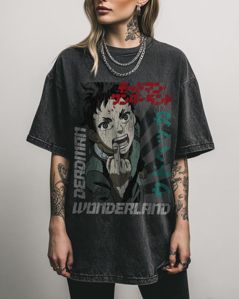 Why This Ganta Deadman Wonderland Dark Anime T-Shirt Appeals to Fans? Step into the thrilling, grim world of the prison carnival with this Ganta Deadman Wonderland dark anime T-shirt. Featuring a fan-inspired graphic of Ganta, this black acidwash tee is crafted from 100% heavyweight cotton for comfort and a bold statement for dark anime enthusiasts….