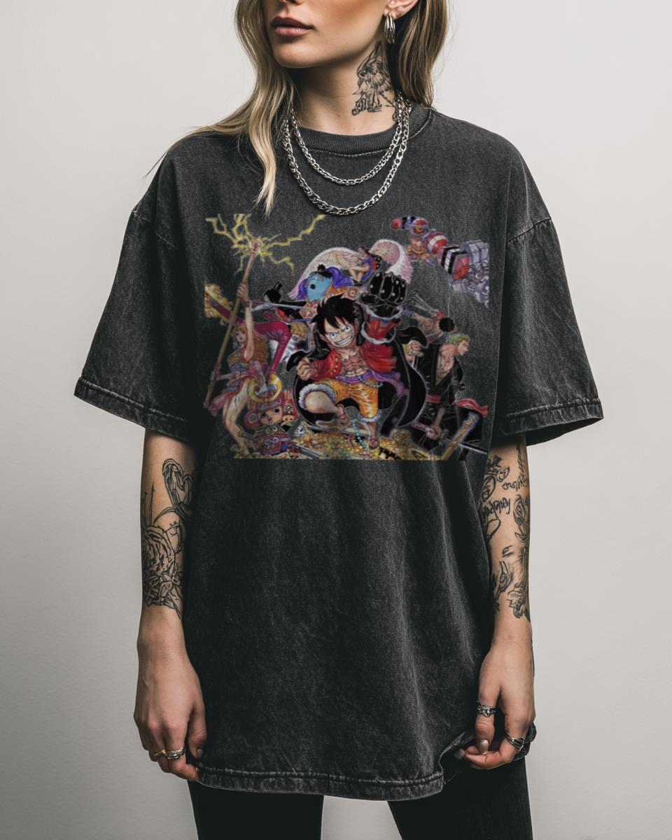 Set sail with the iconic symbol of adventure and freedom! This design proudly features the Straw Hat Jolly Roger, the unmistakable pirate flag of Monkey D. Luffy and his crew from the legendary anime series One Piece. Perfect for dedicated fans of the Grand Line, this shirt embodies the spirit of piracy and unwavering friendship….