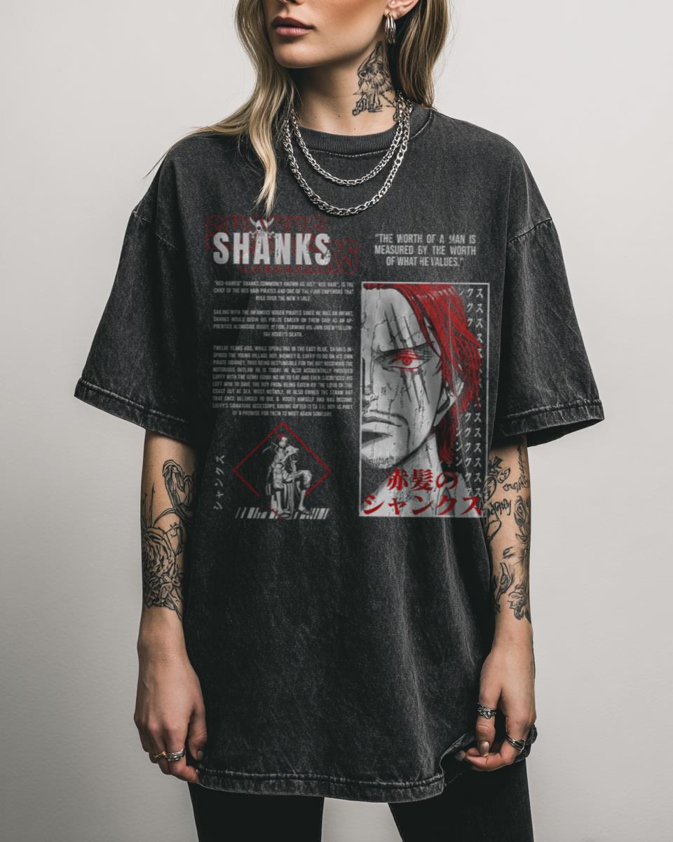 Are you a loyal fan of One Piece and the legendary Red-Haired Shanks? Show your respect for one of the Four Emperors with this iconic Shanks design from One Piece. This graphic pays tribute to the beloved character who inspired Monkey D. Luffy to become a pirate. Perfect for any One Piece fan, alongside other…
