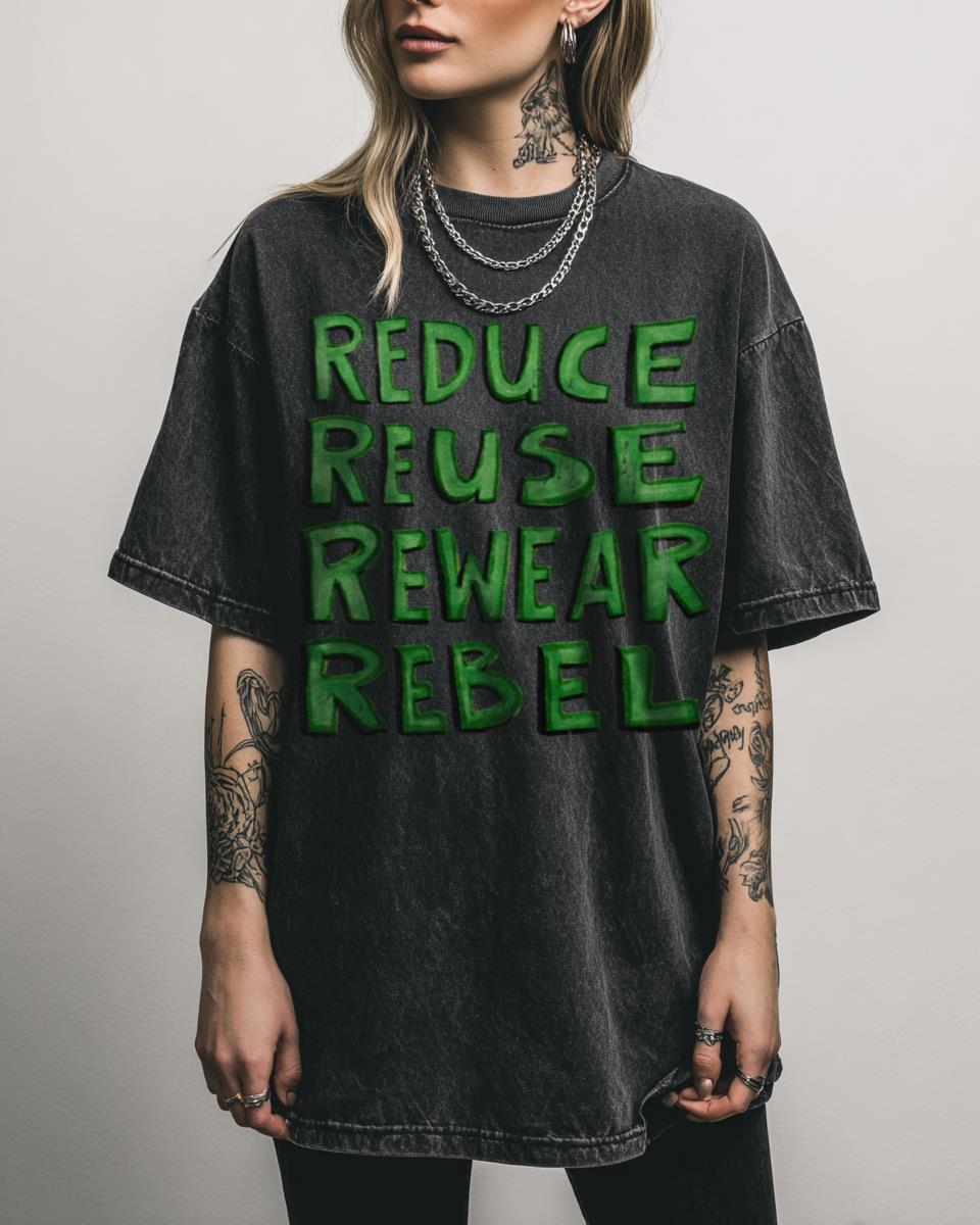 Are you a rebel with a cause, fighting for the environment and a sustainable future? Declare your eco-activism with this bold ‘Reduce Reuse Rewear Rebel’ T-shirt! This design, inspired by movements like Extinction Rebellion (XR), champions sustainable fashion and environmental protection. It’s a powerful statement for anyone who dares to rebel against wasteful practices and…