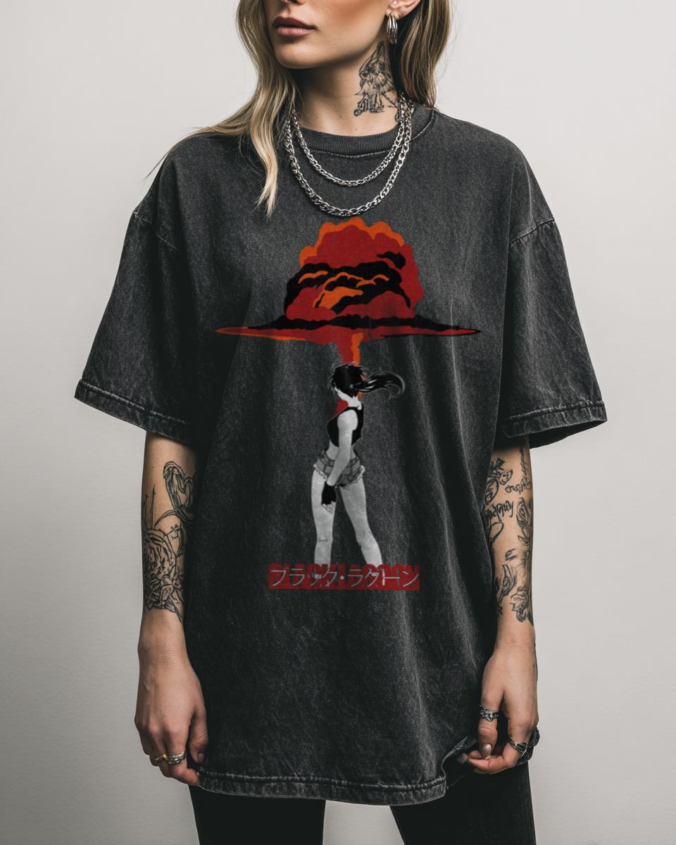 Ready to add some explosive action to your anime wardrobe? Unleash the power with this ‘Black Lagoon Nuclear’ graphic tee, featuring a striking mushroom cloud design inspired by the intense anime and manga series. This edgy artwork captures the dark and thrilling essence of ‘Burakku Ragūn’, perfect for fans of action-packed Japanese animation. Why You’ll…