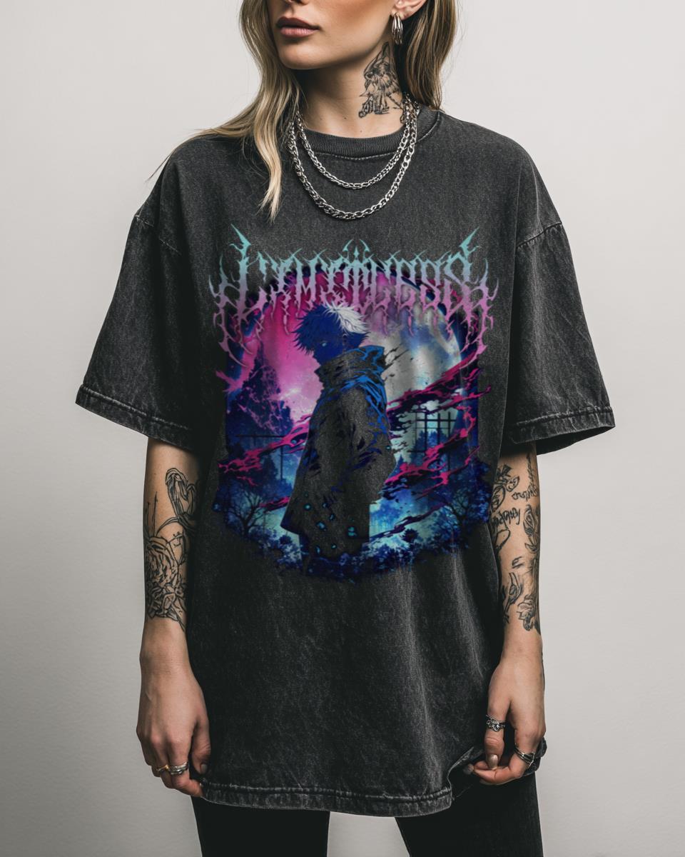 Ready to unleash your inner rock spirit with a unique anime twist? Embrace the powerful fusion of Japanese aesthetics and heavy metal with this “Limitless Silhouette” T-shirt. Featuring a striking silhouette against a moonlit backdrop, this design blends dark, hardcore vibes with an anime-inspired sensibility. It’s a perfect statement piece for otaku who love hard…