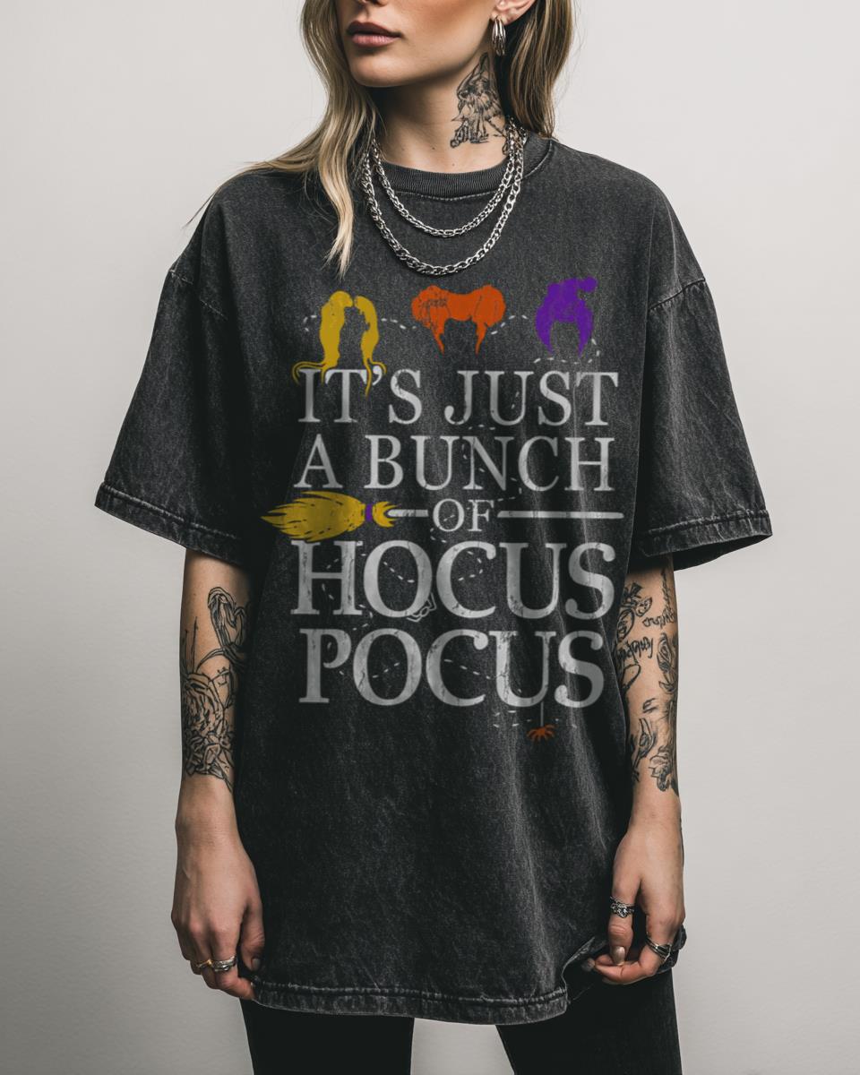 Do you believe in a little bit of magic, especially during spooky season? Embrace the enchanting spirit of autumn and Halloween with this “It’s Just a Bunch of Hocus Pocus” T-shirt. This whimsical design captures the magic of the beloved movie, perfect for witchy souls, fall enthusiasts, and anyone who loves a good dose of…