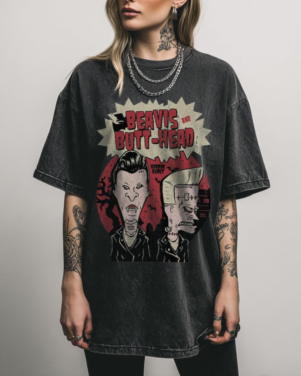Looking for a dose of nostalgic 90s cartoon humor with a spooky twist? Relive the glory days of MTV with this hilarious ‘Beavis and Butthead Horror Rudey Halloween’ design. Featuring everyone’s favorite dim-witted duo in a ghoulishly funny scenario, it’s perfect for fans of classic 90s animation and Halloween mischief. Why You’ll Love This Retro…