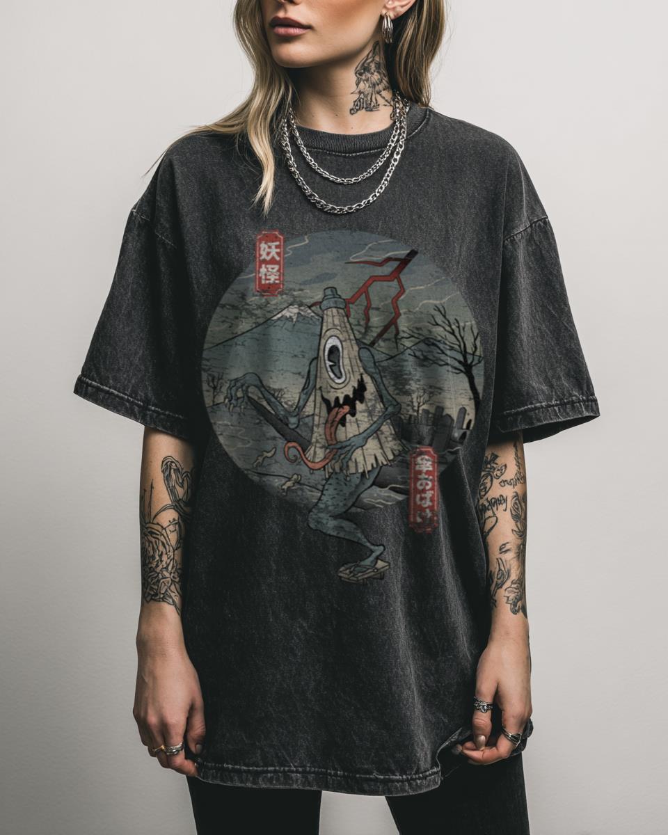 Embrace the Spooky Season with This Umbrella Yokai Classic T-Shirt! Dive into Japanese folklore with this Umbrella Yokai Classic T-shirt, featuring a charming yet eerie Kasa-obake graphic. Crafted from heavyweight cotton with a unique black acidwash, this tee is perfect for Halloween, anime fans, and lovers of traditional Japanese spirits. Why This Japanese Ghost Tee…