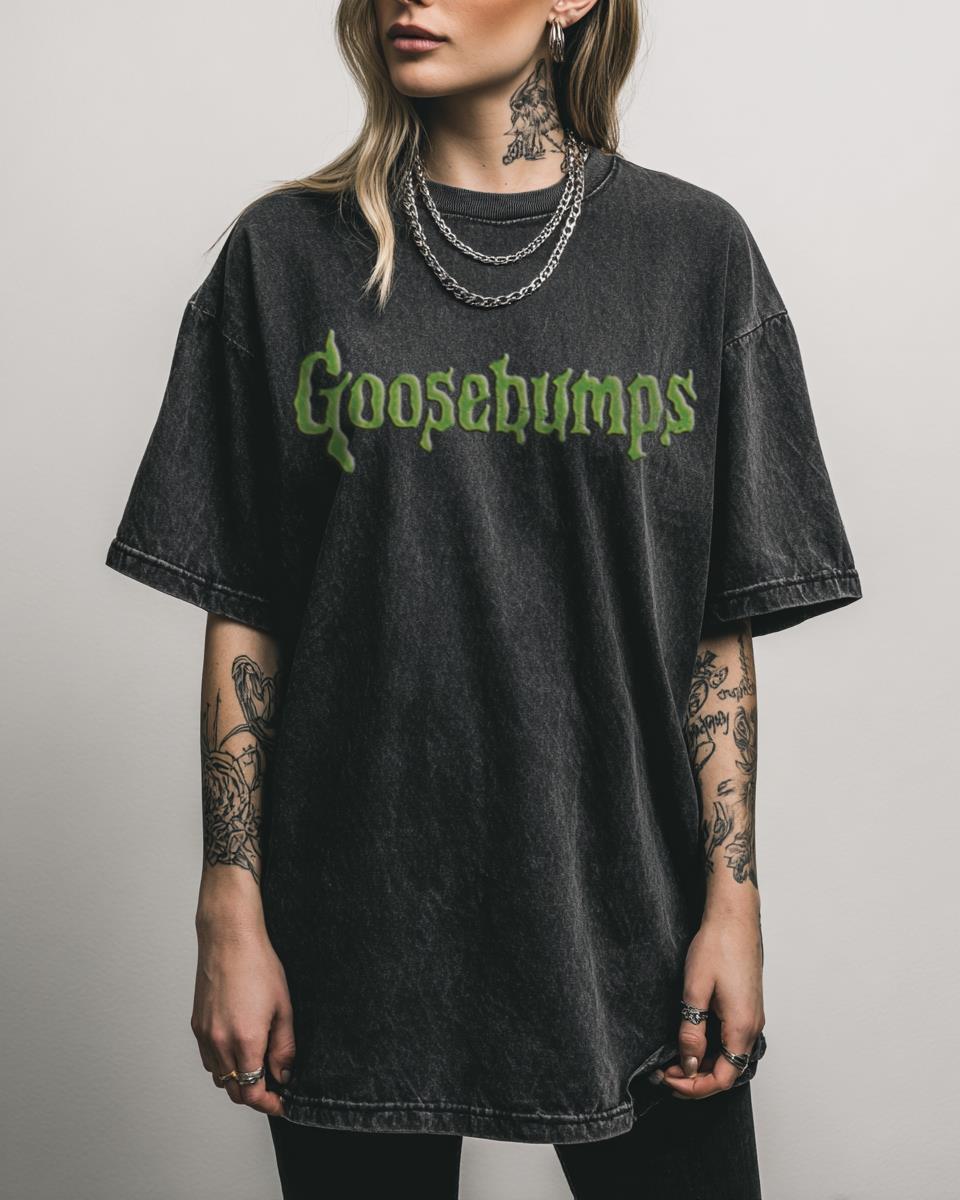 What Makes This Vintage Goosebumps T-Shirt a Must-Have? Dive into nostalgia with this vintage-inspired Goosebumps T-shirt, celebrating the iconic R.L. Stine horror book series. Featuring a unique printed graphic on a black acidwash 100% cotton tee, it’s perfect for fans of creepy stories and 90s nostalgia. Why Fans Love This Goosebumps Graphic Tee: Classic Horror…