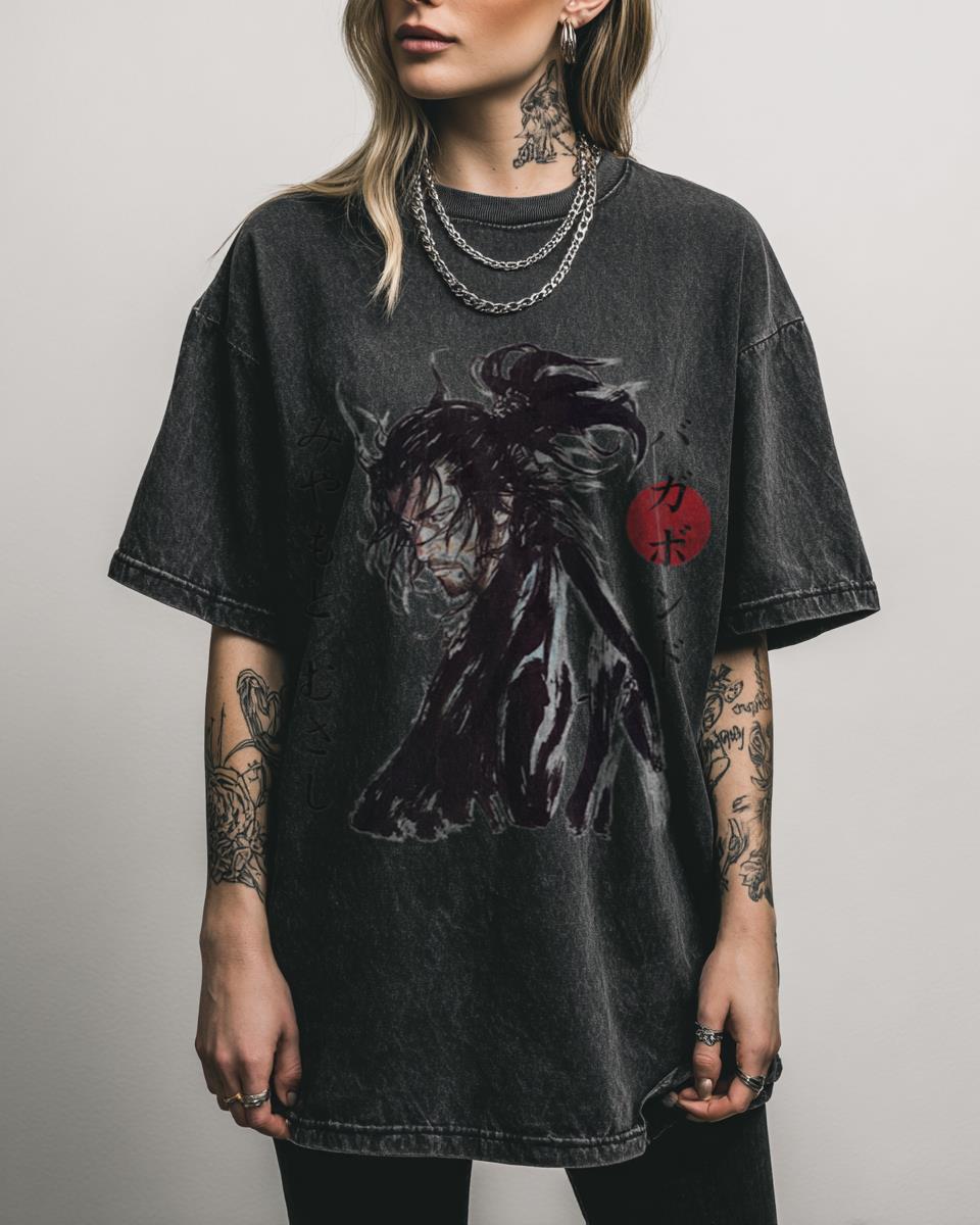 Embark on a Journey with This Vintage Retro Vagabond Manga Musashi T-Shirt? Channel the spirit of the legendary swordsman with this Vintage Retro Vagabond Manga Musashi T-Shirt! This fan-created graphic tee celebrates the acclaimed Vagabond manga series and its protagonist, Musashi Miyamoto. The unique black acidwash fabric adds a cool, vintage edge, perfect for manga…
