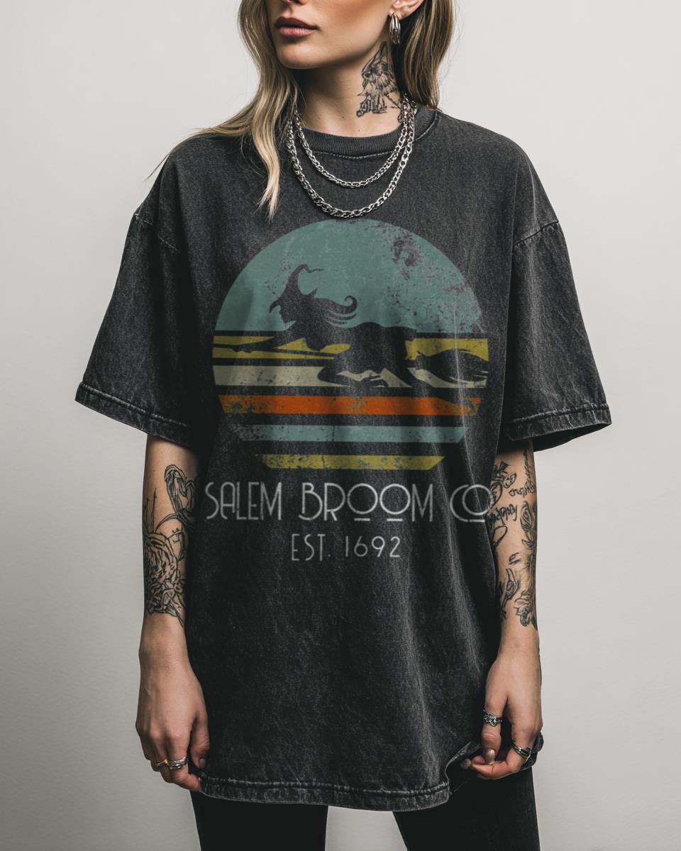 Ready to fly into the spooky season with style? Embrace the spirit of Halloween with this vintage ‘Salem Broom Co. Est 1692 Witches’ T-shirt! Perfect for fans of classic witchy vibes, spooky season, and funny Halloween costumes, this design brings a touch of historical charm to your festive attire. Why You’ll Love This Halloween Witch…