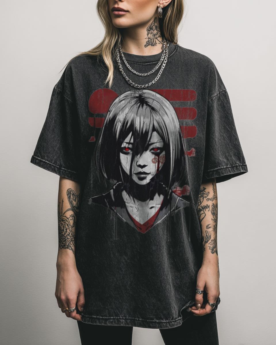 Dare to wear a design that captures the chilling essence of Japanese horror? This “Horror Gaze” tee features a haunting image of a Japanese woman, embodying the eerie and spooky aesthetic of classic Japanese horror. It’s a perfect choice for fans of psychological thrillers, supernatural tales, and those who appreciate truly unsettling art. Why You’ll…