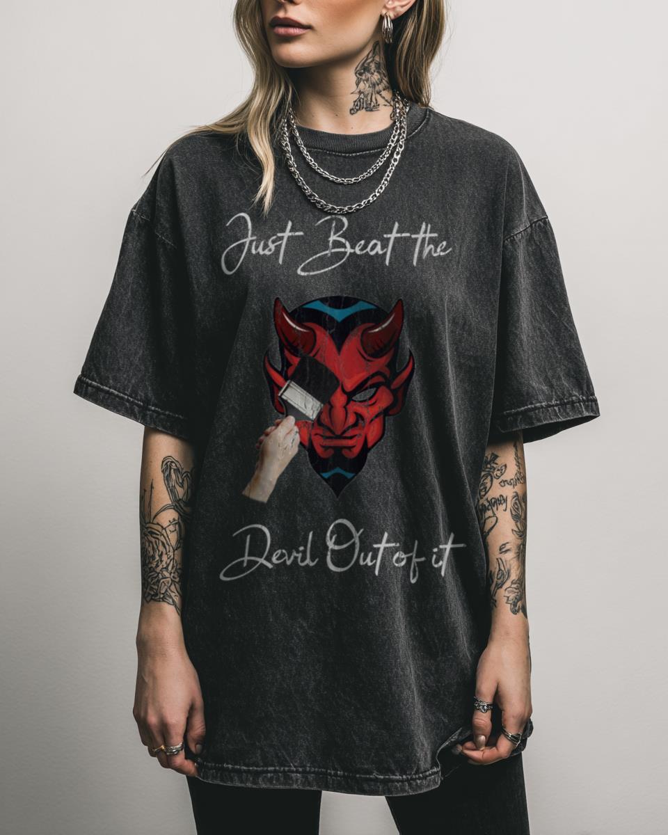 Looking for a t-shirt that combines humor with a touch of the macabre? Unleash your playful dark side with this “Just Beat the Devil out of it” T-shirt. Featuring a cute yet mischievous anime-style devil, this design is perfect for those who love gothic aesthetics, a good laugh, and maybe a hint of Halloween spirit…