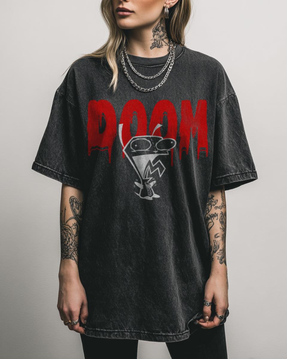 Why is this Invader Zim GIR Red DOOM Logo T-Shirt a Must-Have? Show your allegiance to the darkest corners of space with this Invader Zim GIR Red DOOM Logo T-Shirt. Featuring a spooky graphic of GIR, this fan-created design is a tribute to the beloved Nickelodeon series, perfect for any cult classic animation enthusiast. Key…