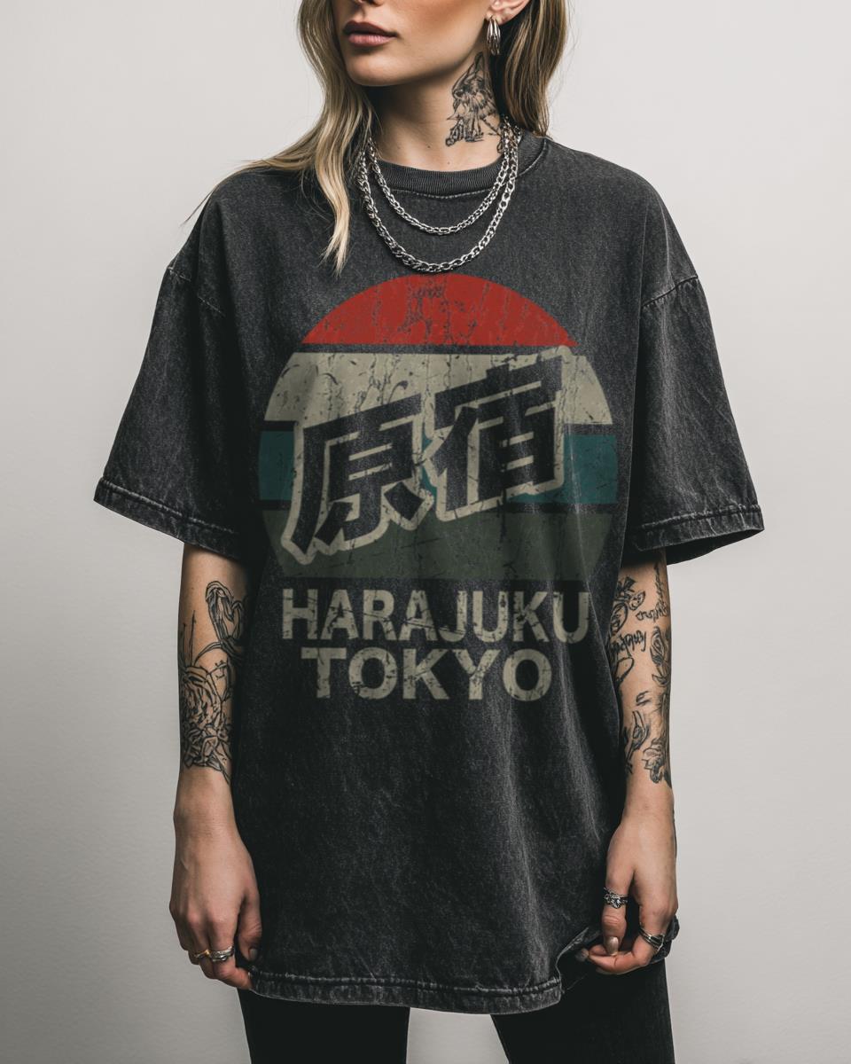 Dreaming of the vibrant streets of Harajuku, Tokyo? Capture the electric energy of Japan’s fashion district with this ‘Harajuku Tokyo Japan Kanji Character Distressed Retro Sunset’ design! Featuring iconic Takeshita Street vibes and Japanese kanji, this graphic offers a cool, vintage, and distressed aesthetic. Perfect for anime fans, otaku, and anyone who loves Japanese city…
