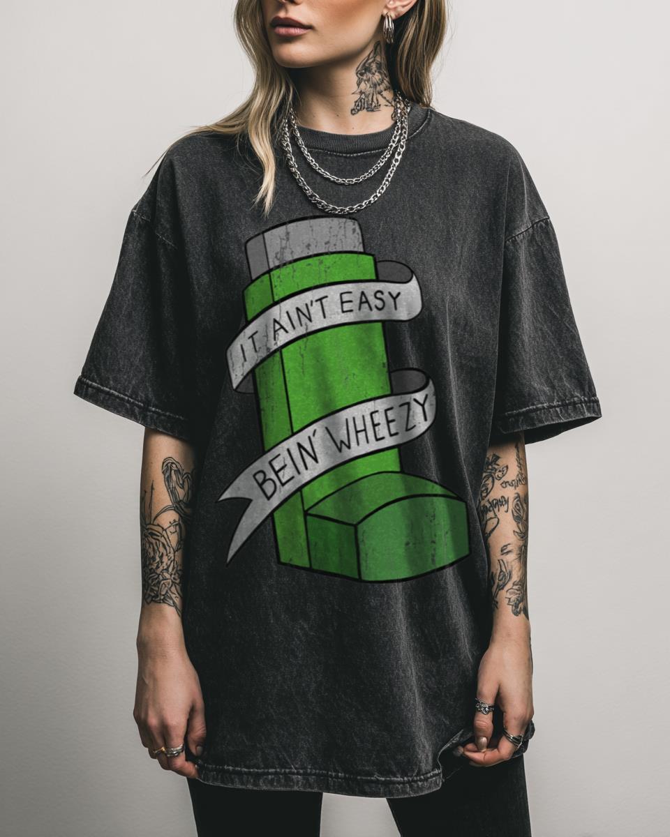 Do you or someone you know deal with asthma, but keep a good sense of humor about it? This ‘It ain’t easy bein’ wheezy (Green) Asthma’ graphic T-shirt is a lighthearted way to acknowledge the daily struggles of asthma. Featuring a witty phrase and a subtle nod to inhalers, this design is perfect for those…