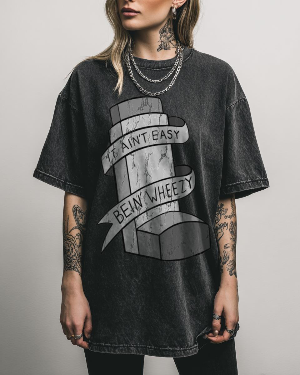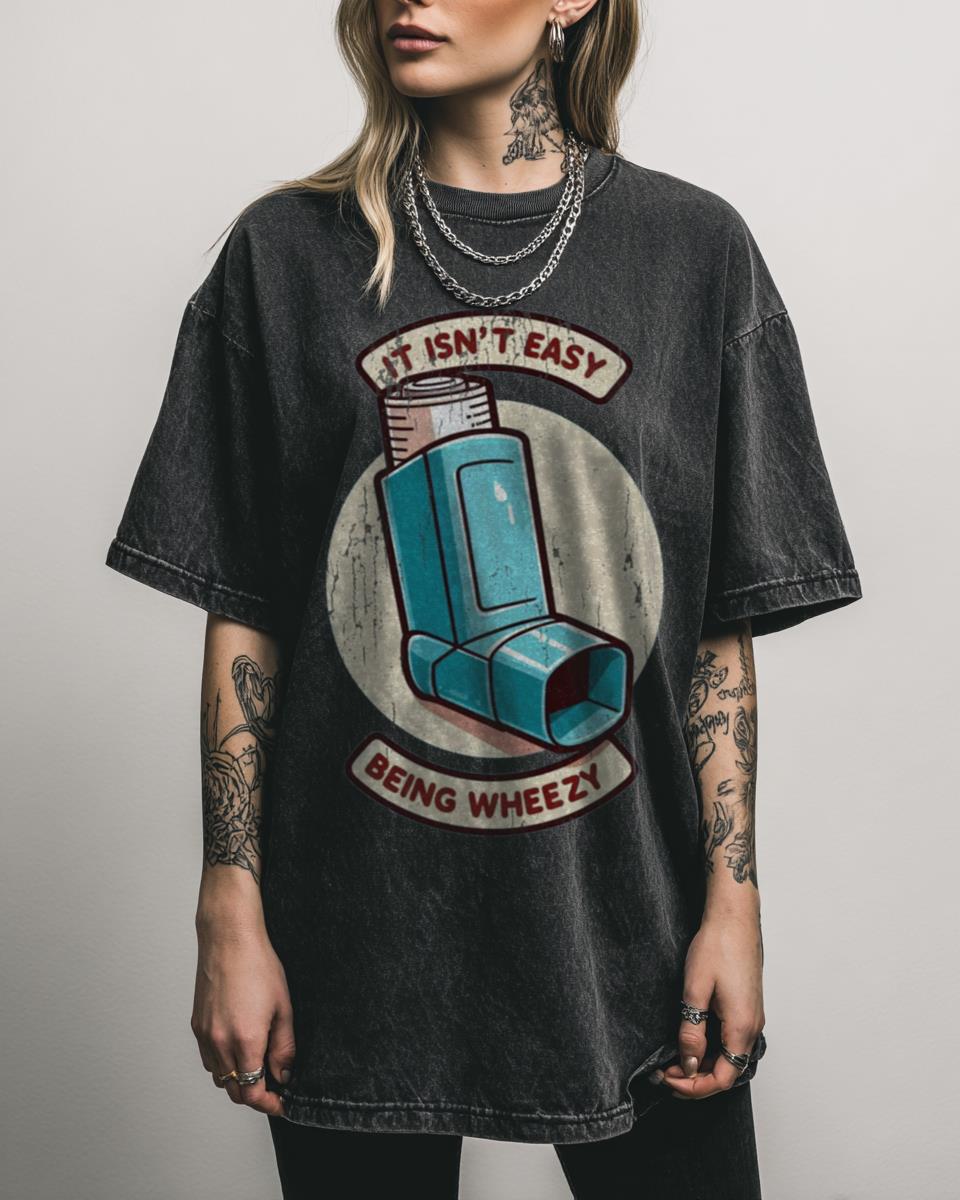 Do you face life’s challenges with a dose of humor and a deep breath? Show off your resilience and wit with this “It Ain’t Easy Bein’ Wheezy” T-shirt, a lighthearted take on living with asthma. This design is perfect for those who understand the struggle and want to raise awareness with a smile, featuring a…
