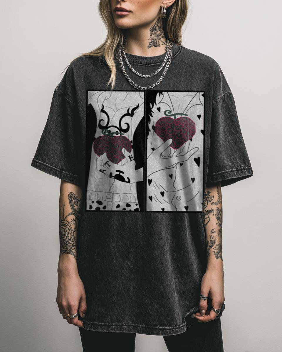 Do you sail the Grand Line with the Straw Hat Pirates? Immerse yourself in the epic world of One Piece with this compelling design featuring Trafalgar Law and the tragic hero Corazon. A must-have for fans of Monkey D. Luffy and the Straw Hat Pirates, this tee celebrates the deep bonds and thrilling adventures of…