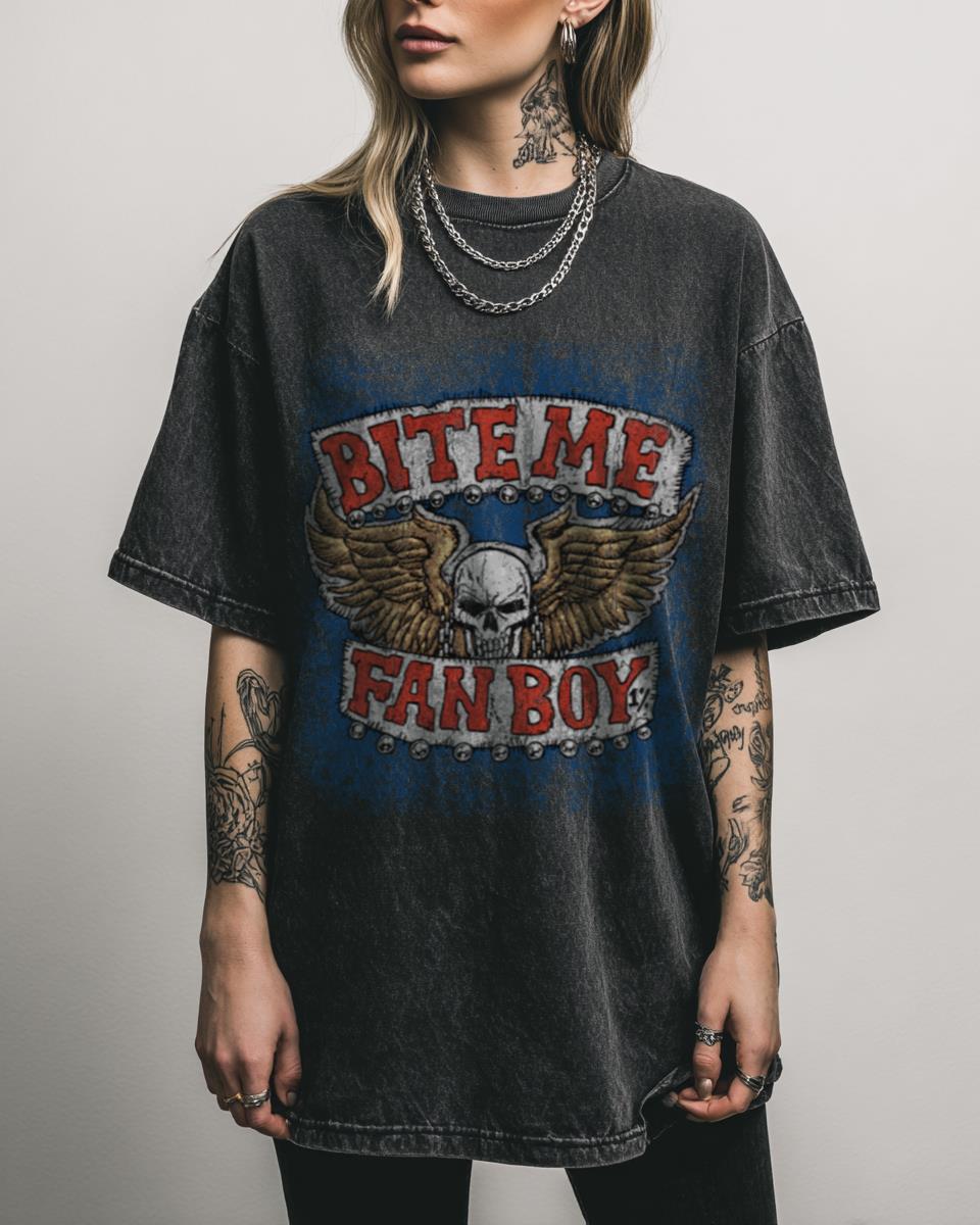 Why This Lobo “Bite Me Fanboy” T-Shirt is a DC Fan Favorite? Unleash your inner “Main Man” with this bold Lobo “Bite Me Fanboy” T-shirt, a tribute to the notorious DC Comics anti-hero. Featuring a gritty graphic on a black acid wash tee, it’s the perfect way to show your appreciation for the ultimate Czarnian…