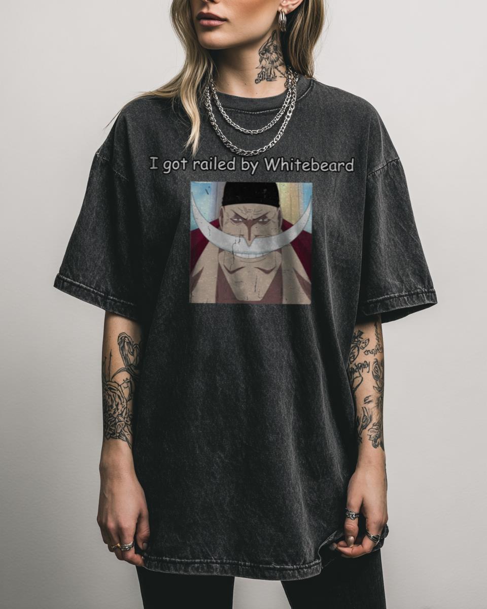 Are you a One Piece fan with a bold sense of humor? Get ready for laughs and double-takes with this hilariously provocative ‘I got railed by Whitebeard’ graphic tee. This funny anime joke is perfect for fans of One Piece who appreciate edgy humor and want to make a memorable statement among fellow pirates and…