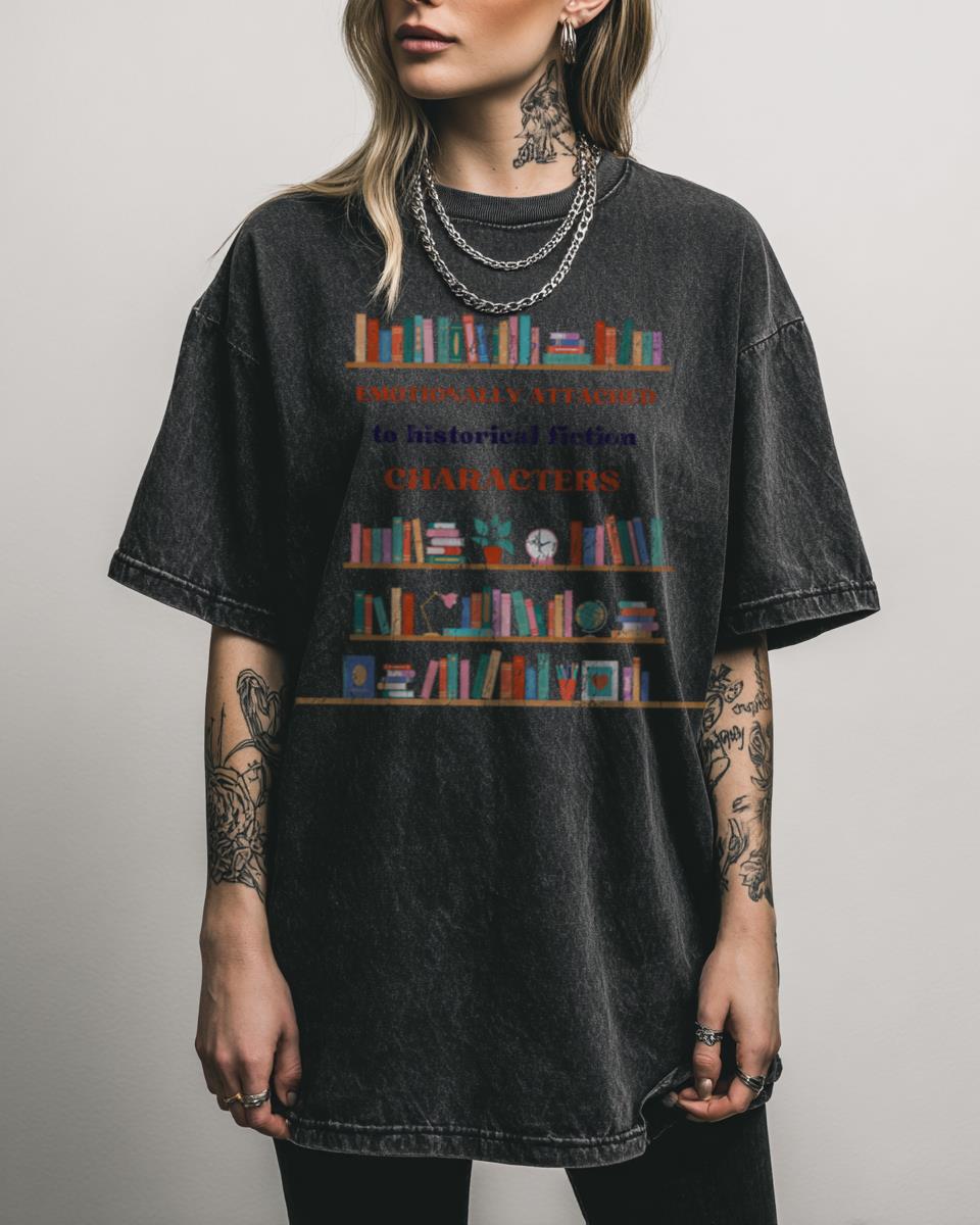 Do you find yourself deeply invested in the lives of fictional characters? Declare your devotion to the captivating worlds of literature with this “Emotionally Attached to Historical Fiction Characters” T-shirt. Perfect for avid readers who get lost in novels, from Bridgerton romances to epic historical sagas. This design speaks directly to the heart of every…