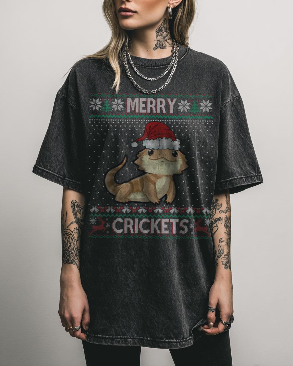 Get into the festive spirit with your favorite scaly friend! This adorable “Merry Crickets Bearded Dragon Ugly Sweater Christmas Pajama” design is perfect for reptile owners and fans of unique holiday humor. Featuring a cute bearded dragon in a festive (and slightly ugly) Christmas sweater, it’s an ideal tee for holiday parties or cozy Christmas…