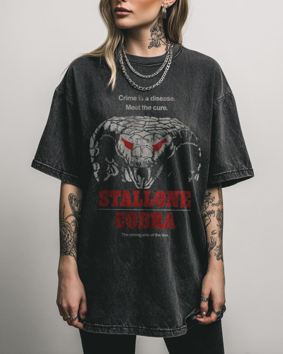 Remember the iconic action heroes of the 80s? Channel your inner tough guy with the ‘Stallone Cobra’ T-shirt, a retro design celebrating the classic 1980s action-horror movie. Featuring Sylvester Stallone as Cobra, this tee is perfect for fans of vintage cinema, pop culture, and the unforgettable era of Rambo and Rocky. Why This 80s Stallone…