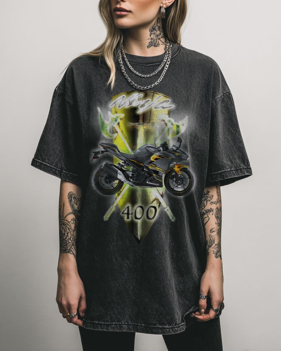 Are you a motorcycle enthusiast with a need for speed and style? Rev up your wardrobe with this ‘Ninja 400’ design, a sleek tribute to the iconic Kawasaki Ninja sport motorcycle. This graphic captures the essence of Japanese engineering and high-performance bikes, perfect for riders and fans of powerful machines. It’s a statement of speed,…