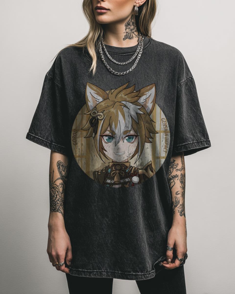 What Makes This Gorou Genshin Impact Fan Art T-Shirt So Adorable? Show your affection for the loyal General Gorou with this charming **Gorou Genshin Impact fan art T-shirt**, created by HOROHARO. Featuring a cute chibi-style graphic on a **black acidwash 100% cotton tee**, it’s perfect for fans of the popular anime game and manga. Why…