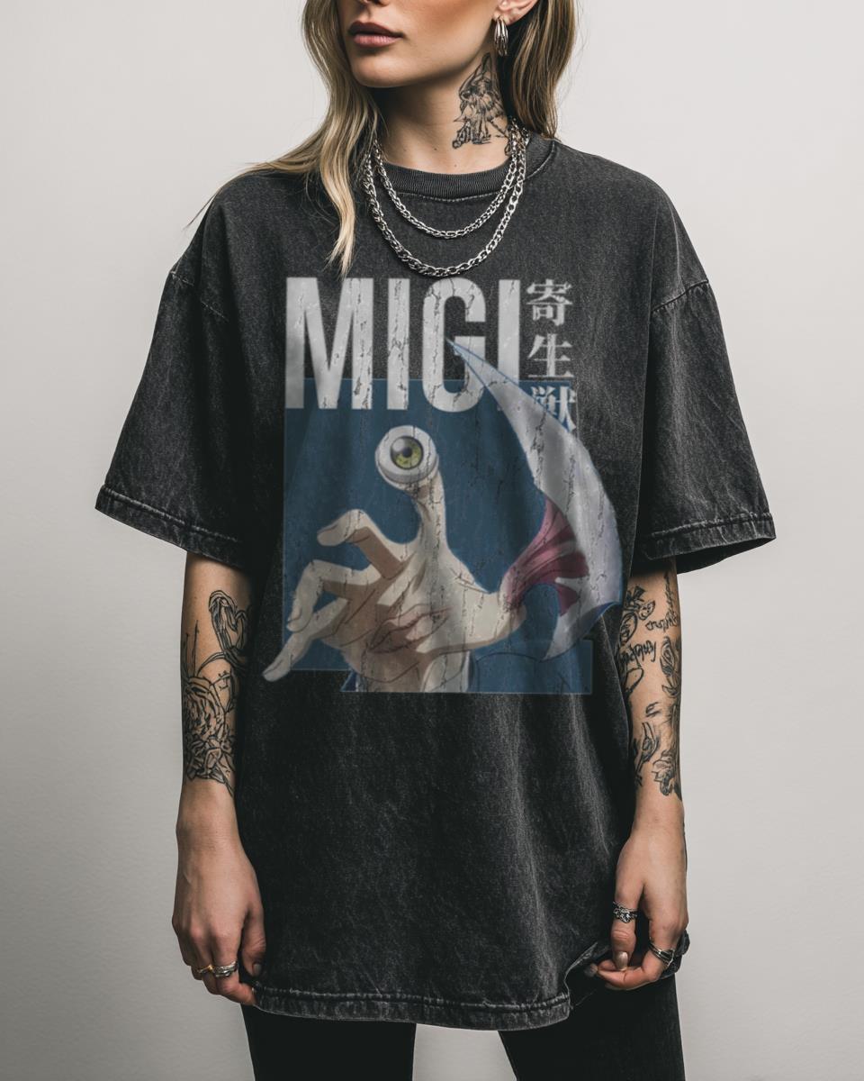 Is Migi an essential part of your anime character collection? Show your appreciation for one of anime’s most unique companions with this “Migi Parasyte Essential” design, from the acclaimed series “Parasyte: The Maxim.” This tee is a must-have for fans of Japanese horror and sci-fi manga, celebrating the iconic alien hand that shares a bond…