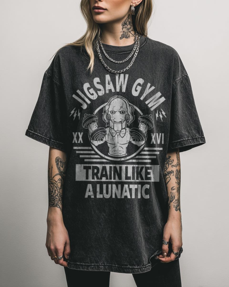 Do you want to add a twisted, horror-themed edge to your workout routine? Unleash your inner Jigsaw with this ‘Jigsaw Gym, Train Like A Lunatic’ design. A darkly humorous and cool graphic tee for fans of the Saw movie franchise, perfect for horror enthusiasts who also love to hit the gym. Why You’ll Love This:…