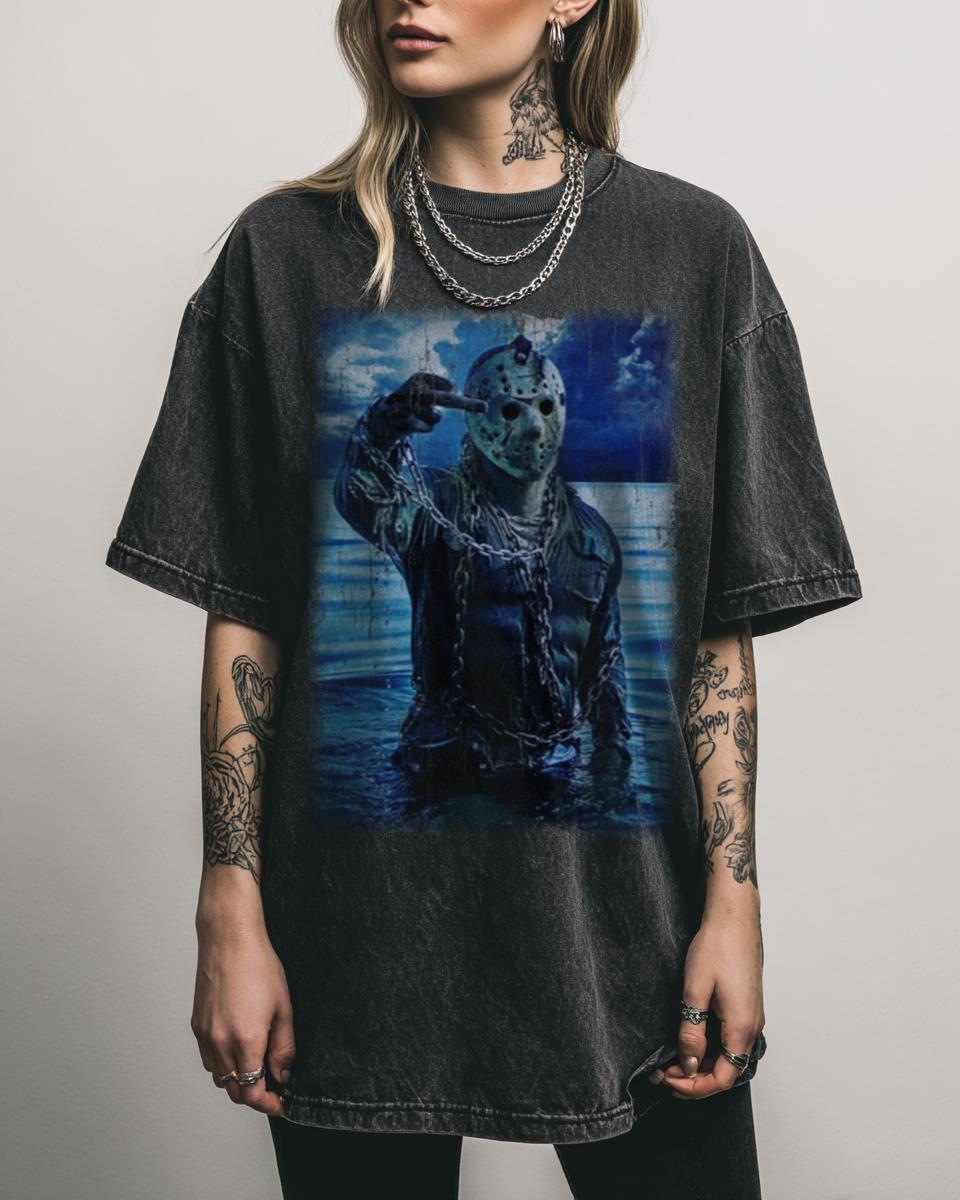 Dare to spend a night at Camp Crystal Lake? This classic “Friday the 13th” design is a chilling tribute to the iconic 80s horror film and its unforgettable killer, Jason Voorhees. Perfect for fans of slasher movies, Halloween, and retro horror, this tee brings a touch of scary nostalgia to your wardrobe. Why You’ll Love…