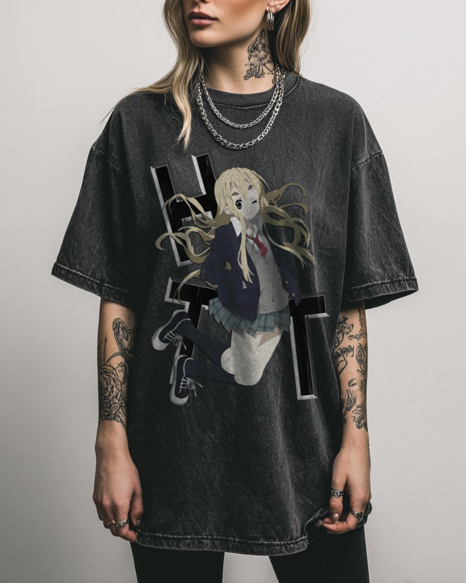 Celebrate K-On!’s Ho-kago Tea Time with This Anime Band Tee! Jam out with your favorite light music club with this Ho-kago Tea Time K-On! anime band T-shirt, a fan-inspired design celebrating the iconic J-Pop group. Featuring the beloved members on a cool black acidwash tee, it’s the perfect graphic tee for any fan of the…