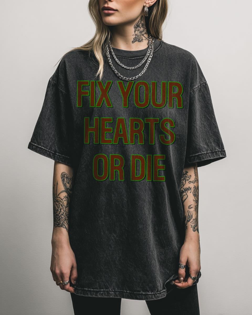 Ready to wear your heart on your sleeve, and advocate for change? Make a bold statement with the ‘Fix Your Hearts Or Die’ T-shirt, inspired by the iconic David Lynch quote from Twin Peaks. This powerful design intertwines a classic cinematic reference with a crucial message of support for Trans Rights. It’s more than just…