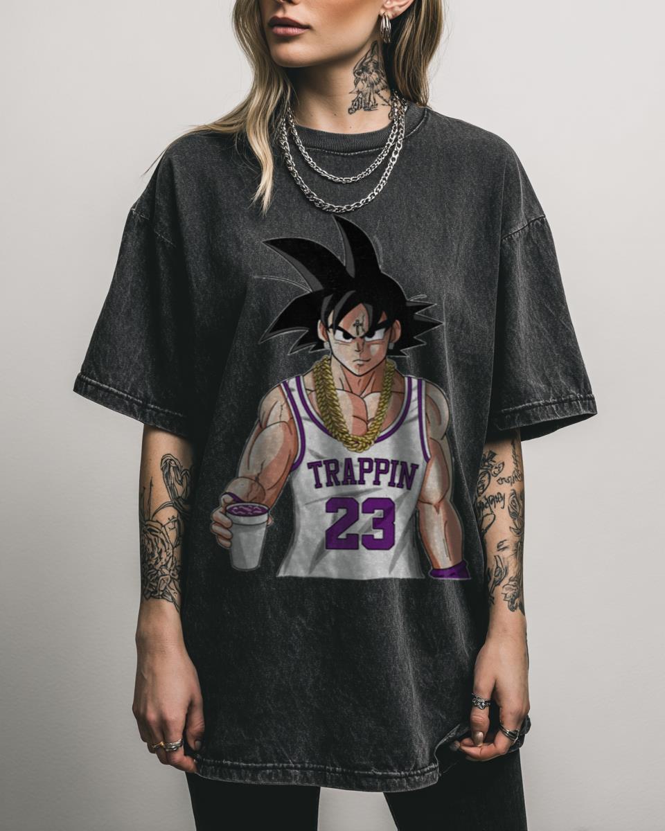 Looking for a unique blend of Dragon Ball Z and modern streetwear aesthetics? Step up your style game with this ‘Trap Goku’ graphic t-shirt, featuring the legendary Saiyan in a cool, contemporary aesthetic. This design reimagines Goku with a ‘trap’ or ‘swag’ vibe, blending iconic anime with urban fashion trends. It’s a fresh take on…