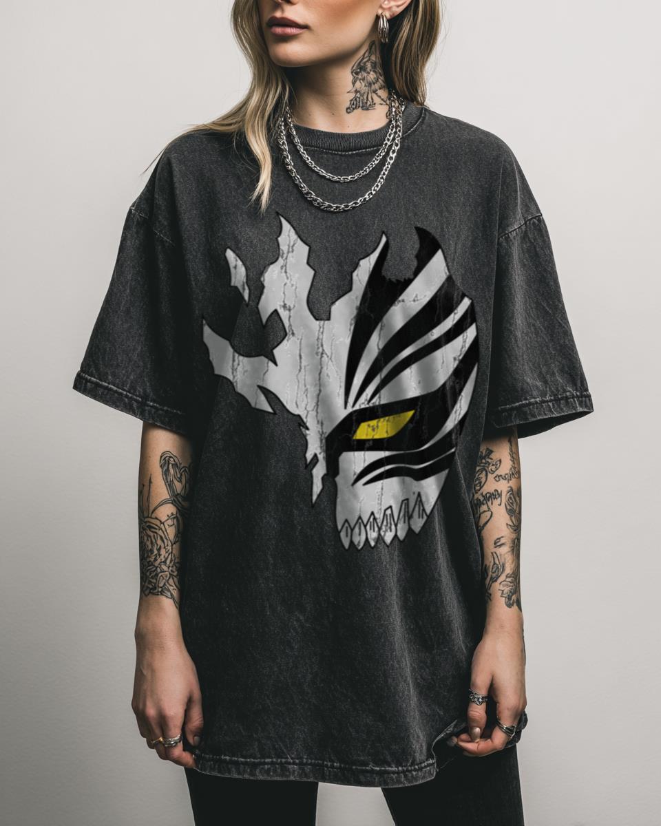 Are you ready to embrace the power of the Hollow within, just like Ichigo Kurosaki? Unleash your inner Shinigami and Hollow with this striking ‘hallow mask’ design, inspired by the epic ‘Bleach’ anime and manga! This graphic features Ichigo Kurosaki’s iconic Hollow mask, a symbol of his immense power and struggle. A must-have for fans…