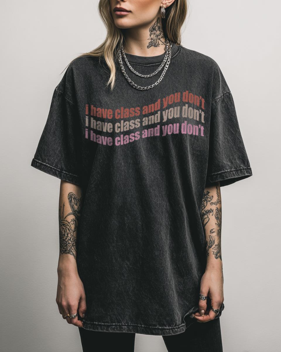 Looking for a witty quote from a beloved 90s movie? Channel your inner Annie James with this iconic “I Have Class and You Don’t” T-shirt, a memorable line from the classic film The Parent Trap. This trendy design is perfect for fans of Lindsey Lohan’s dual role as Annie and Hallie, celebrating the movie’s charm…