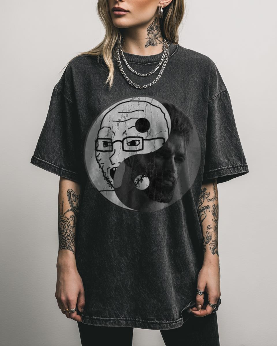Why is This Chad Wojak Soy Boy Meme Tee a Bold Statement? Make a statement with this Chad Yin Yang Wojak Soy Boy Meme Graphic Tee. This edgy design, featuring popular internet culture references, on a black acidwash 100% cotton shirt, is for those who appreciate satirical and controversial humor. Bold Features for Meme &…