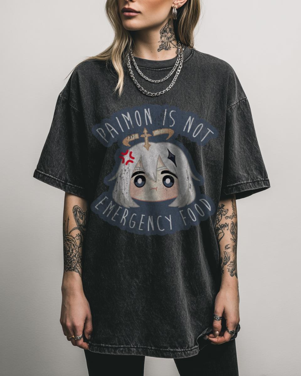 Why This Genshin Impact Paimon Tee is Utterly Adorable? Show your love for your trusty companion with this **Genshin Impact Paimon (Not Emergency Food!) graphic tee**. Featuring a cute chibi design of Paimon, this black acidwash shirt is a fun and comfortable way to express your fandom. Reasons to Get This Paimon Genshin Impact Shirt:…
